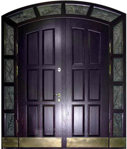 Усиленная двухстворчатая входная дверь со стеклянными вставками для загородного дома №47